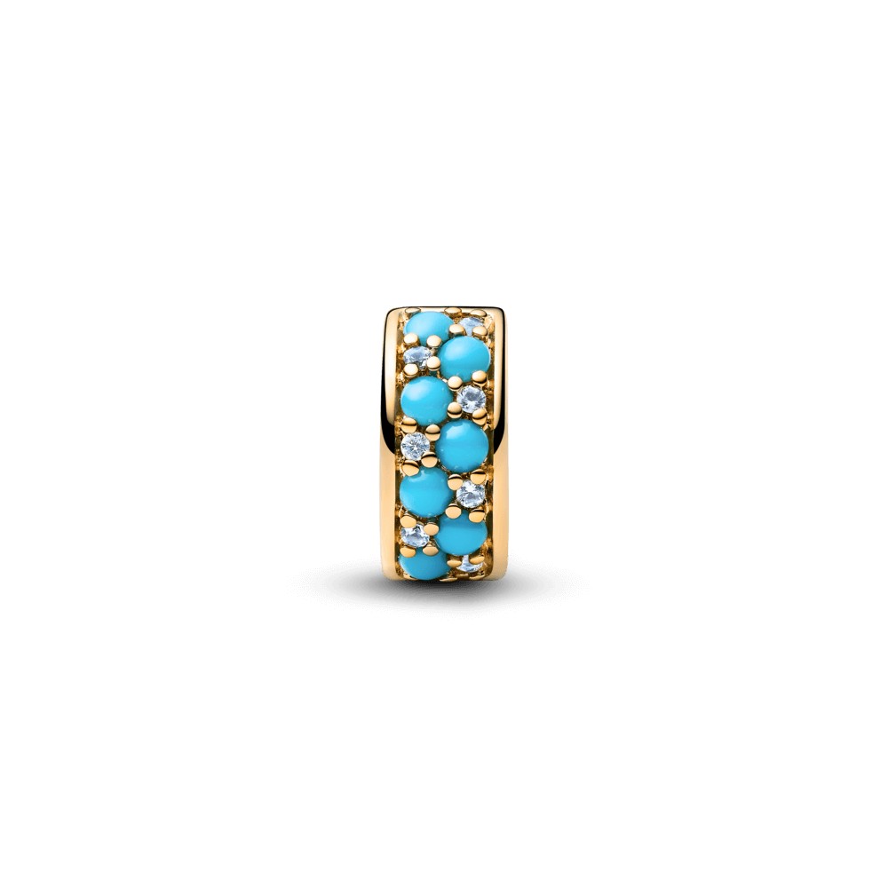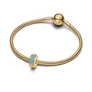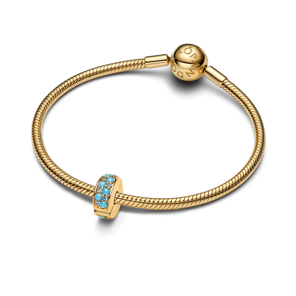 Charm Bấm Pandora Mạ Vàng 14K Đính Đá Xanh Dương