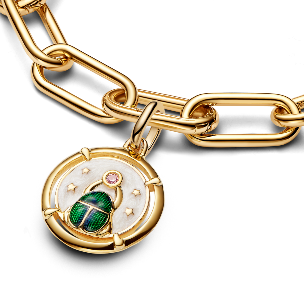 Charm Mạ Vàng 14k Pandora Me Tráng Men Xanh Lá Họa Tiết Bọ Hung