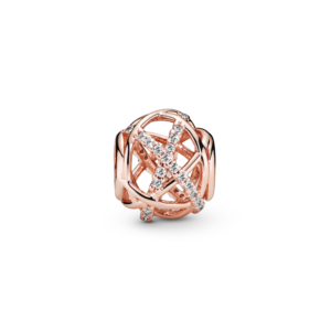 Charm Pandora Moments Mạ Vàng Hồng Dạng Cầu Rỗng Đính Đá