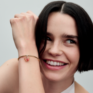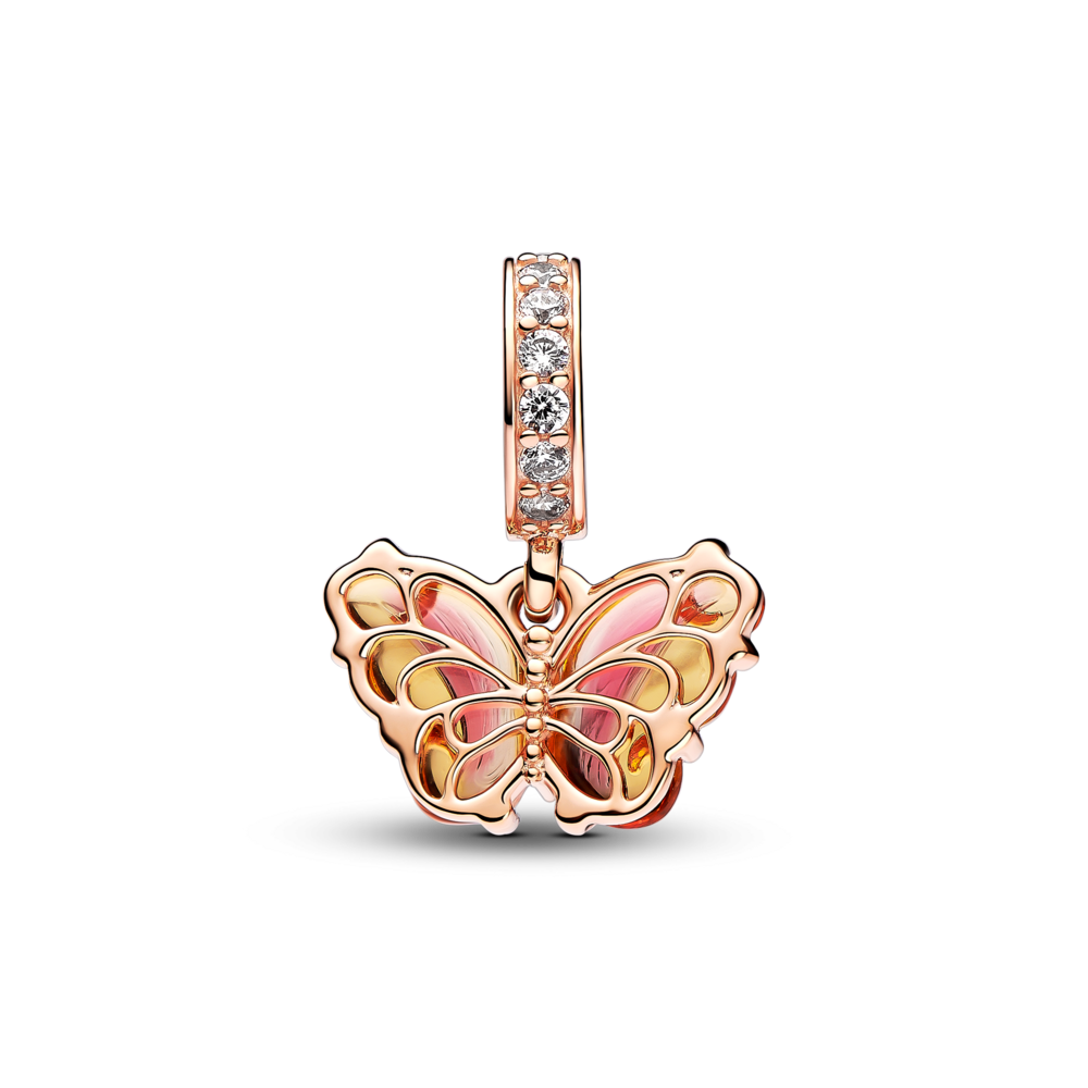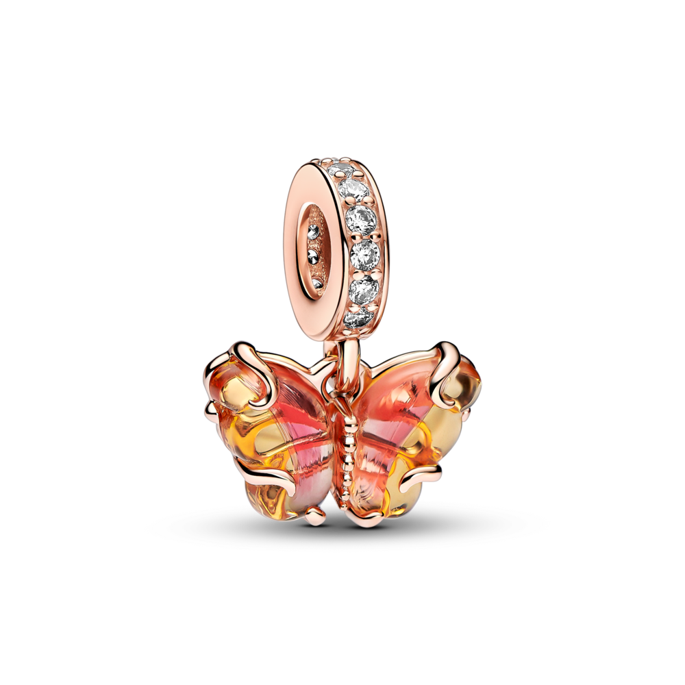 Charm Treo Pandora Mạ Vàng Hồng 14k Murano Bươm Bướm