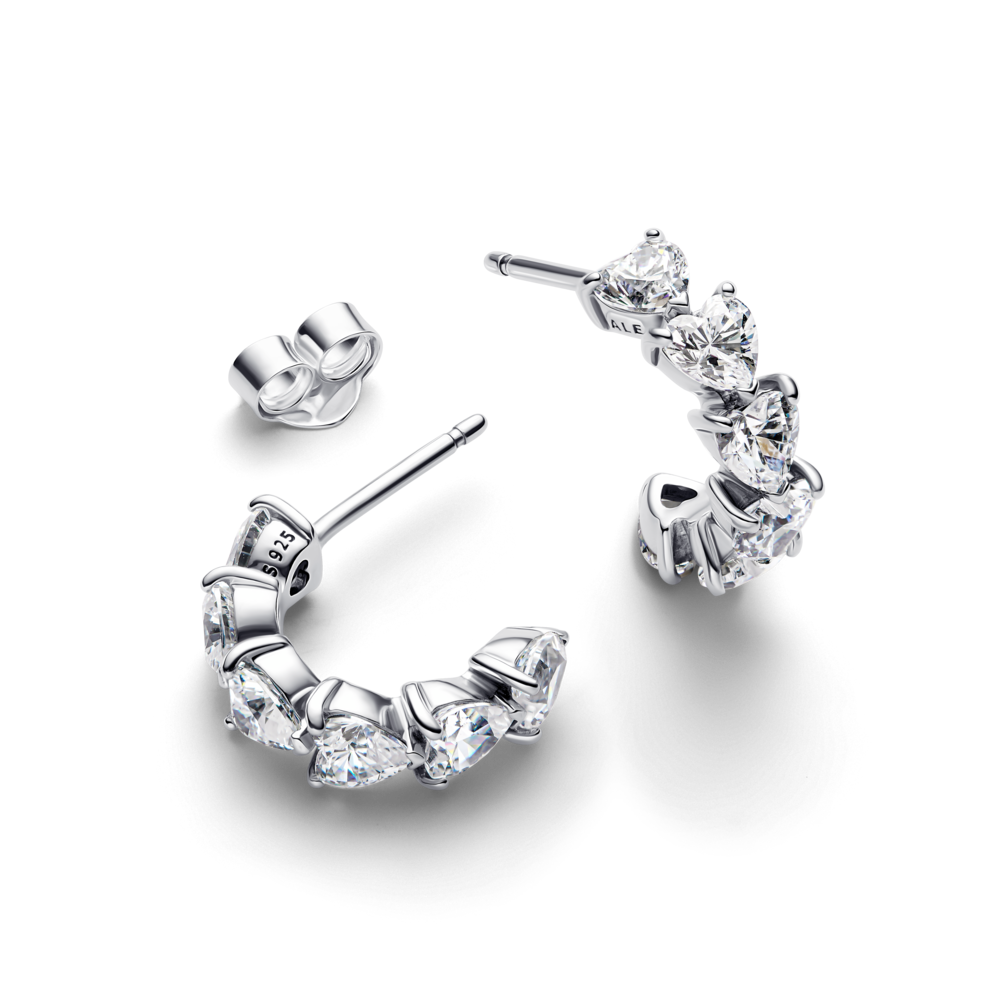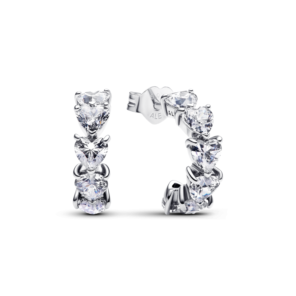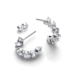 Hoa Tai Bạc Tròn 12 Trái Tim Đính Đá