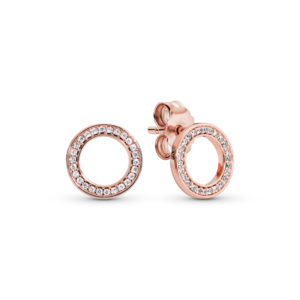 Hoa Tai Pandora Signature Mạ Vàng Hồng 14K Hình Tròn Đính Đá