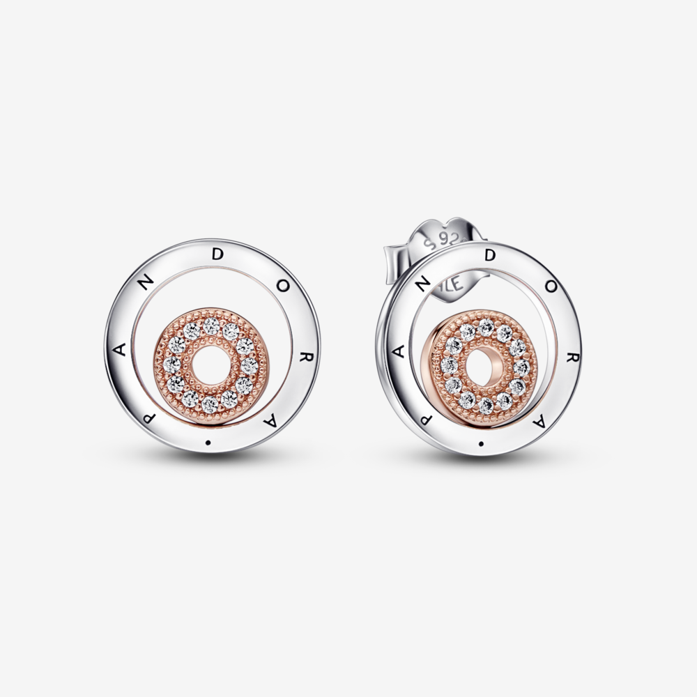 Hoa Tai Pandora Signature Mạ Vàng Hồng 14K Logo