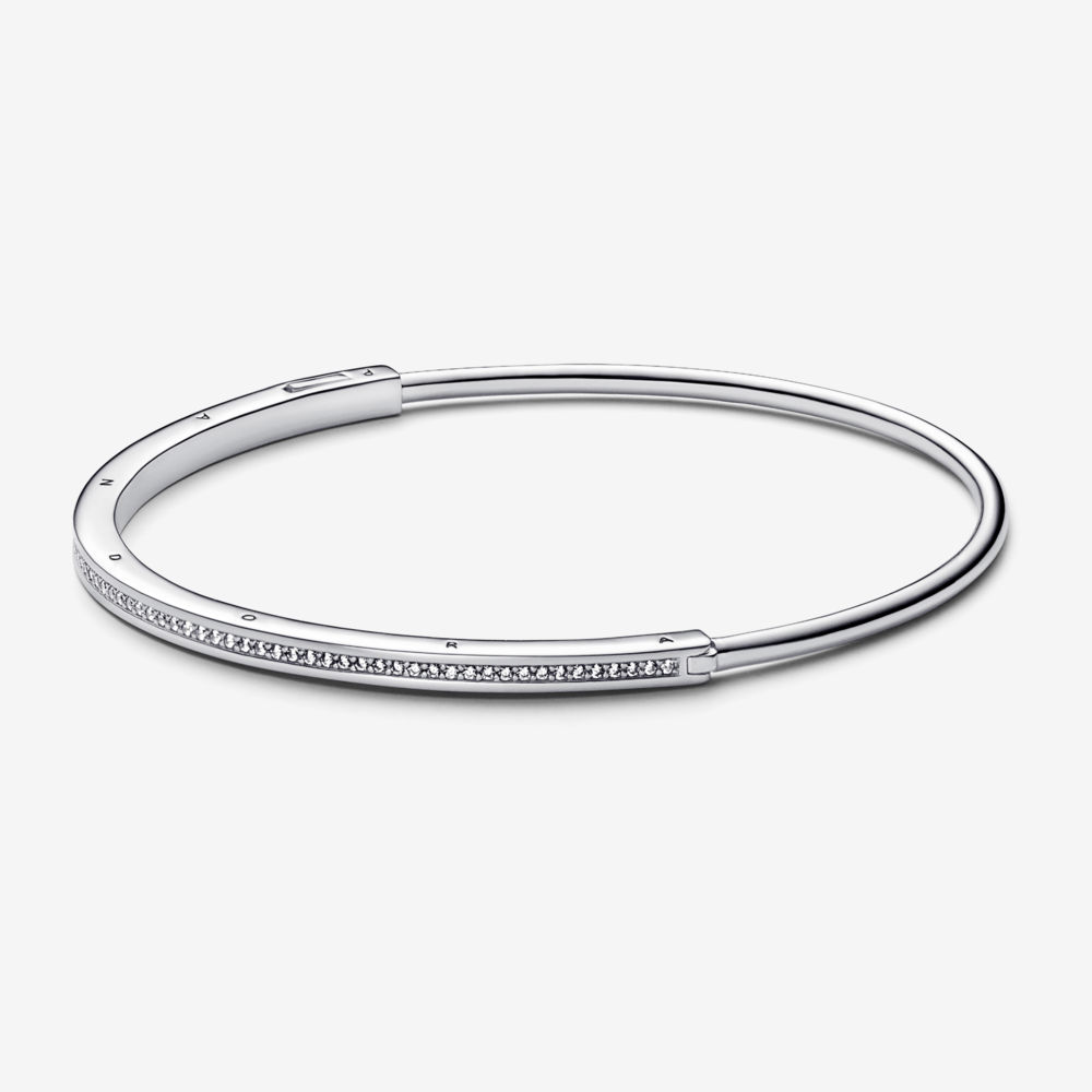 Vòng Kiềng Pandora Signature Bản Dẹp Đính Đá Pave